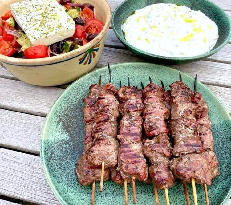 De gode grækere har en helt anden tilgang til forfinet kød. De skærer det i mindre stykker, marinerer i olivenolie og grønne krydderier, trækker på små spyd og griller dem lynhurtigt.